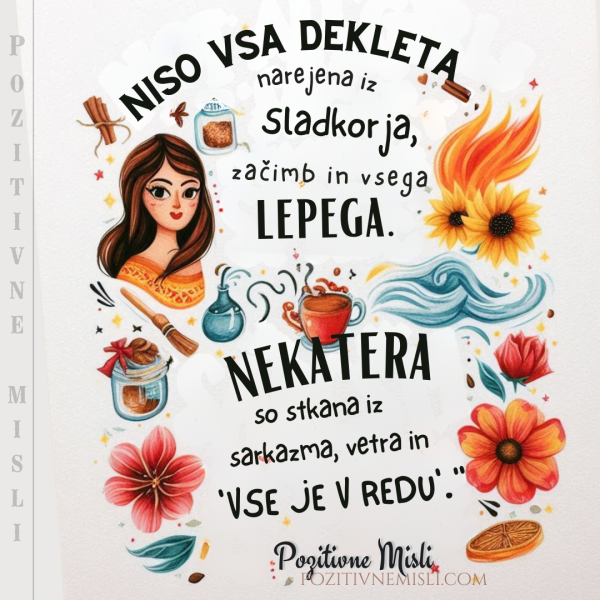 Dekleta, hodimo po hiši med umivanjem zob. Kadar se prhamo hkrati, beremo etiketo na plastenki šampona. Smejimo se svojim šalam, preden jih povemo drugim. Ne potrebujemo ure, imamo mobilni telefon. Sovražimo, ko nam veter pokvari frizuro. 10-krat na dan gledamo v hladilnik, čeprav ne bomo ničesar vzele ven. Dogaja se, da pokličemo svoj mobilni telefon, da ga najdemo. Gledamo na uro in moramo zopet pogledati, ker smo pozabile, koliko je pokazala. Obračamo blazino, da spimo na hladni strani. Pred spanjem preštejemo, koliko ur bomo spale, ampak zaradi takih malenkosti smo dekleta nekaj POSEBNEGA!