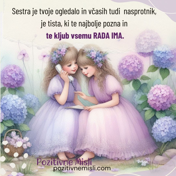 Sestra je preprosto najboljša oseba v mojem življenju in si ne znam predstavljati življenja brez nje! Všečkaj in deli sliko, če se strinjaš!