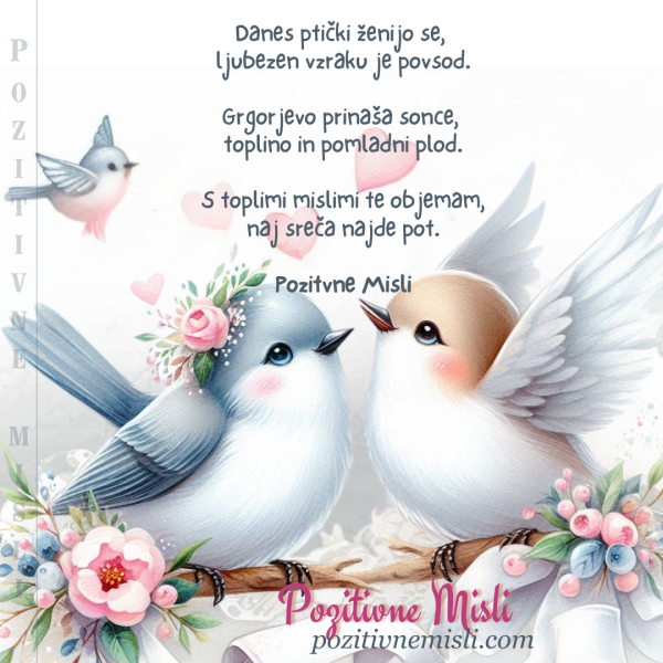 Danes je gregorjevo, dan, ko se ženijo ptički in je ljubezen v zraku.