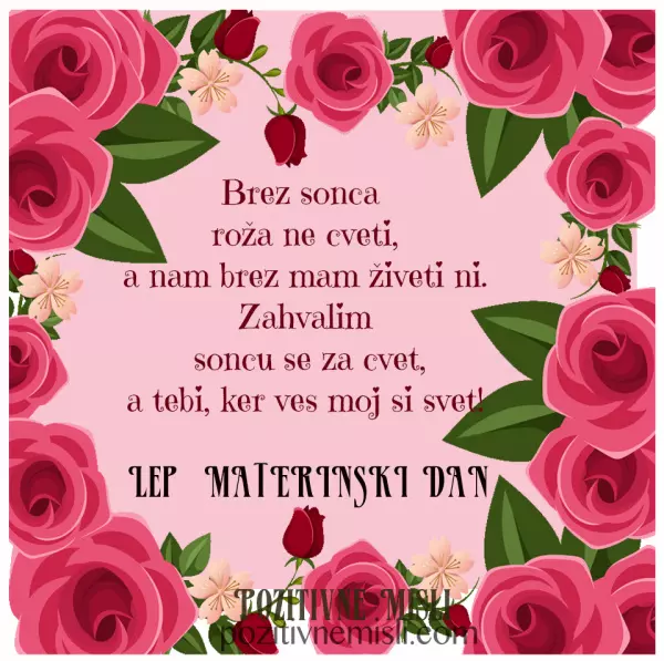"Ti si pesem, nežna melodija, v srcu vedno tiha simfonija. V tvojih očeh najdem tolažbo, mir, mama, ti si moje upanje, moj vir." Ta prelepa misel izraža globoko čustvo ljubezni in občudovanja, ki ga čutimo do naših mam. Mama je tista, ki nas uči prvih korakov v življenju, nas tolaži, ko smo žalostni, in praznuje z nami naše uspehe.
